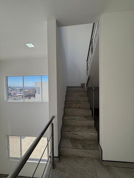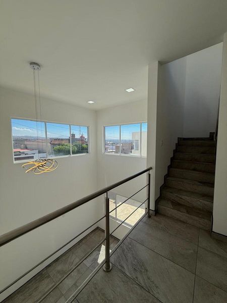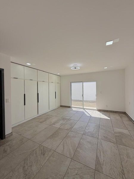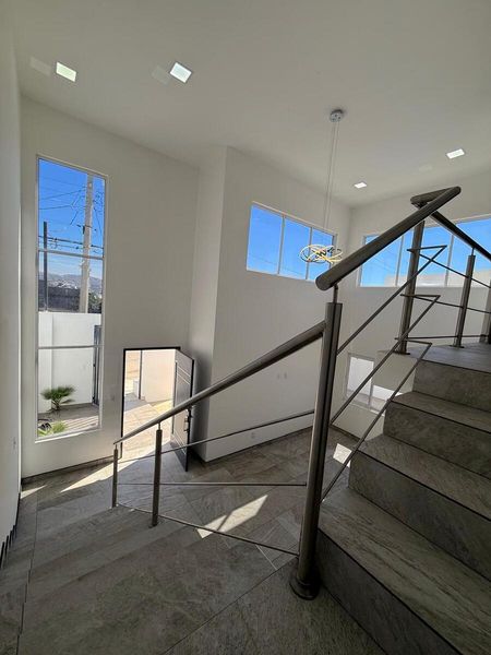 Sala con doble altura, cocina con cuarzo, comedor, cuarto de lavar, medio bano. recamara master con baño completo, closet y acceso a patio.