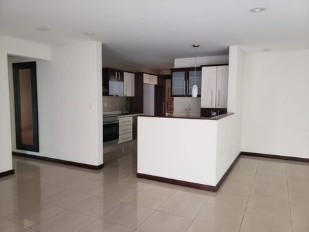 Excelente departamento muy bien ubicado y muy iluminado, espacios amplios , segundo nivel con elevador. Cuenta con dos recamaras ambas con closet la principal con baño, 2 baños completos, sala comedor muy amplias, cocina integral semi abierta con Barra y desayunador. Persianas en todo el departamento. dos lugares de estacionamiento para autos chicos en línea se organizan con un vecino.