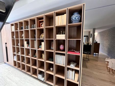 * Mueble empotrado bajo escalera a modo de abriguero, decorativo y funcional