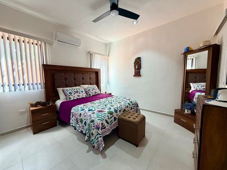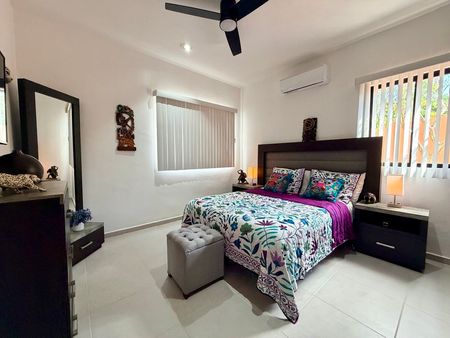 Recámara principal con clóset vestidor y baño completo. Tiene salida directa al patio.