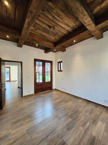 La cocina integral de ultra lujo, con sobres de mármol y maderas finas, es el sueño de todo chef, mientras que la terraza techada con vista al hermoso jardín y chimenea exterior de piedra es perfecta para cenar al aire libre. El jardín en sí es impresionante, con un hermoso árbol que le da un toque de naturaleza. El dormitorio en suite, con chimenea, cama de día, vestidor y baño completo de lujo, es un oasis de relajación. Dos garajes cubiertos con puertas automáticas de madera completan la planta baja.