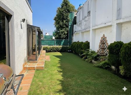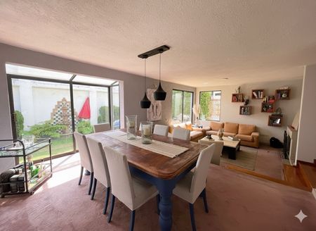 Excelente casa en condomino horizontal con vigilancia; cuenta con 2 niveles, en la planta baja tiene la sala y el comedor con chimenea y con acceso al jardín privado en toda la parte trasera de la casa, cocina integral cerrada con desayunador , medio baño de visitas, área de lavandería, área de tendido y cuarto de servicio con baño.