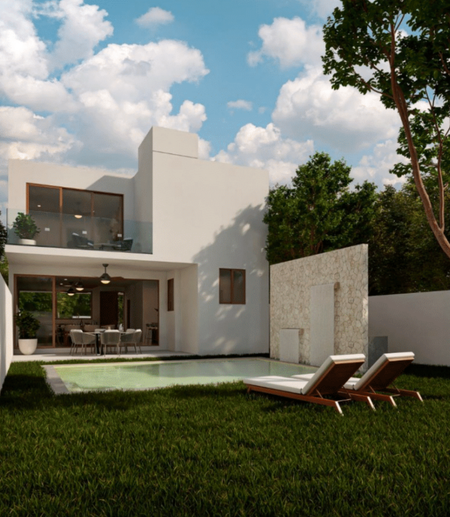 Casa ubicada en Conkal dentro de privada con 11.3 hectáreas con 224 lotes en pequeños clusters con amenidades.