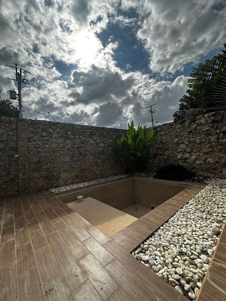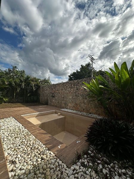 Muros laterales de mampostería , acabados en cemento pulido y Chukum.