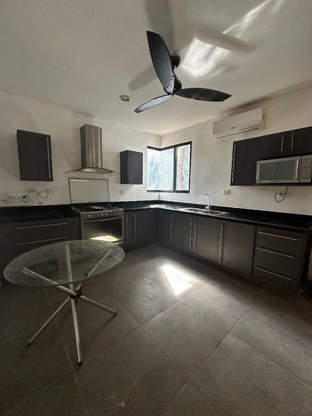 Cocina integral equipada con estufa, campana, ventilador y aire acondicionado de 12000 btu