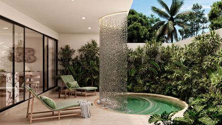 minimalismo contemporáneo con la exuberante naturaleza tropical, dando lugar a una atmósfera de serenidad y tranquilidad. Su diseño incorpora el agua y la vegetación de manera integral, creando espacios que conectan armónicamente generando un ambiente bienestar.