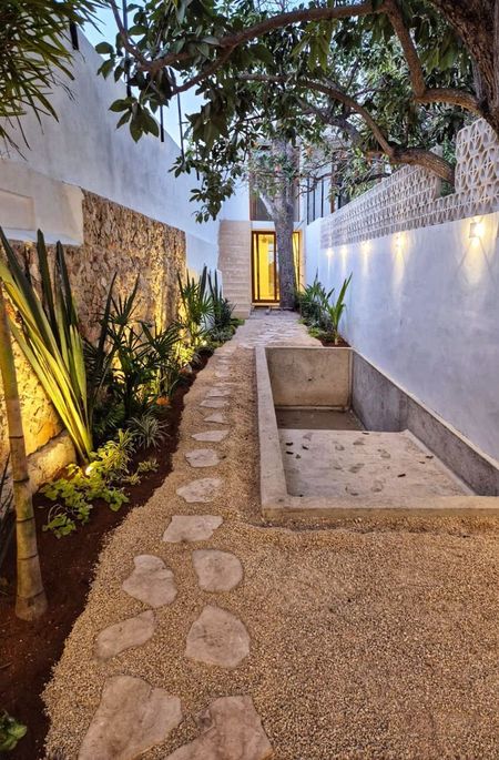 conservan su estructura original y se conectan por medio de un jardín interior con techo de barareque al área de descanso.