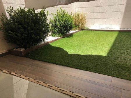 cochera para dos autos, medio baño, cocina equipada, área de lavado, terraza, jardín.