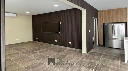 - Equipada con AC, refrigerador, lavadora y secadora, 1 TV en sala.