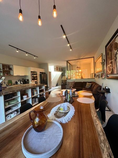 Planta Baja: Recibidor, medio baño para visitas, amplio ambiente de sala - comedor - barra de marmol y funcional cocina integral equipada disfrutando de una hermosa vista de la terraza al lado de la selva. alacenas y dos bodegas.