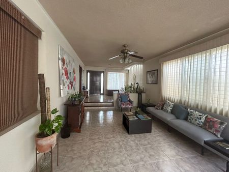 - La primera habitación tiene vista al garage. cuenta con clóset de madera de piso a techo, cortinas, ventilador y aire acondicionado. El baño completo está a un costado el cual también sirve como baño de visita.