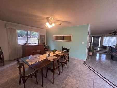 Comedor separado y cocina con barra y alacena.