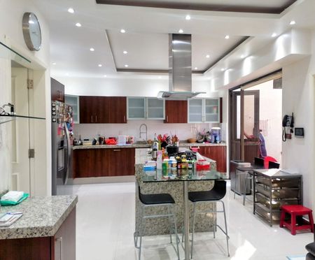 isla central, encimeras generosas, Alacena/despensa de madera walk in pantry. Ventanal con patio contiguo, Lavavajillas,