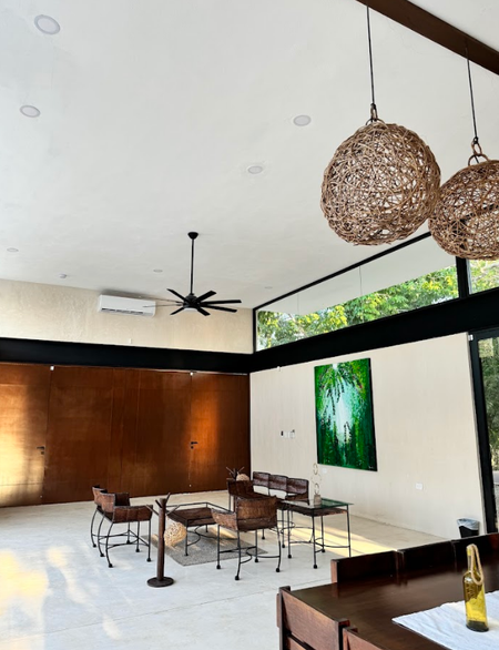 ~ Sala- Comedor a doble altura, con ventanales con vista a la piscina.