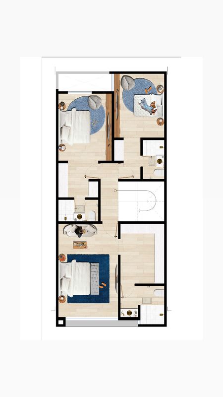 2 recamaras secundarias, cada una con baño completo y espacio para closets