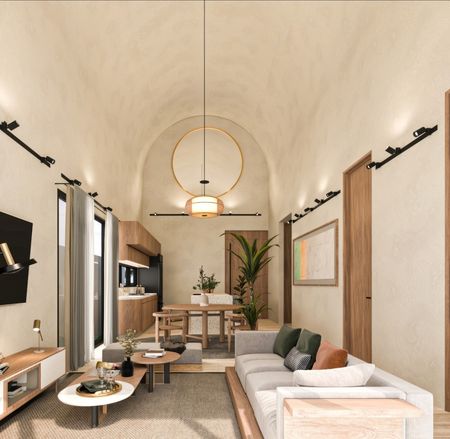 dobles alturas, pronunciadas curvas, acabados en chukum, piedra natural y amplias