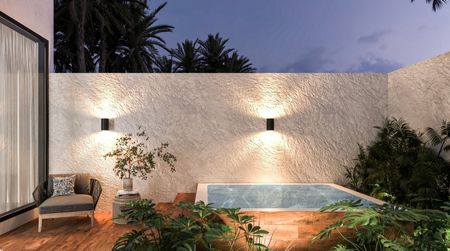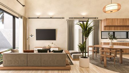 Denotando sus muros en concreto aparente, iluminación inteligente en exteriores e interiores, detalles en en piedra maya, lambrines y celosía de madera de ingeniería junto con impresionante ingreso de doble altura, una casa que podrás controlar con la app desde tu celular y disfrutar de sus amplios espacios su amplia piscina y vivirás