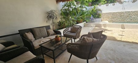 • Piscina de 2.60 x 5.50 con acabados de chukum y piedra.