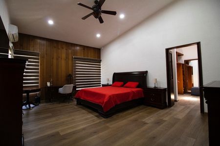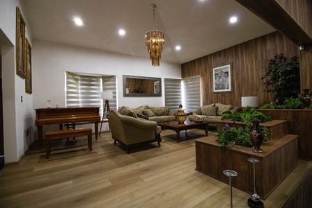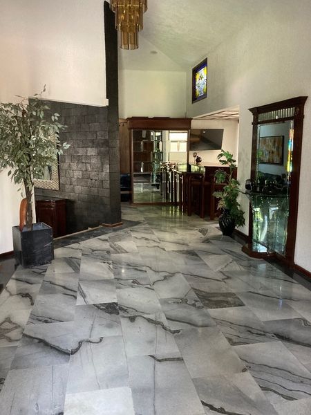 Residencia totalmente amueblada en renta con hermosa alberca, terraza/ palapa ideal para eventos sociales, espectacular bar /salón de juegos con mesa de billar, Toda la propiedad Rodeada de bellos jardines, árboles, espectacular fuente panorámica con vistas desde la casa como de sus amenidades a la naturaleza.. Cuenta además con Área independiente como recámara de huéspedes o loft, y oficina privada con baño. En el ingreso a la residencia, encontramos un vestíbulo, sala recibidor con piso de ingeniería, comedor en desnivel y grandiosa estancia con piano, baño de visitas con piso y paredes cubiertas de mármol Italiano, antecomedor, jardín interno, cantina y cava, bar, cocina integral, cuarto para alacena, pasillo lateral de servicio. Cuatro amplias y cómodas habitaciones con pisos de ingeniería, closets y baños privados, sala de tv, la habitación principal con vestidor, baño y jacuzzi, Aire acondicionado en todas estas áreas. Cochera techada para 4 autos y espacio para 6 autos más . En planta alta, área de lavado y dos cuartos de servicio con baño