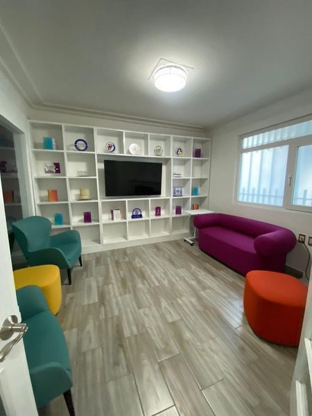 Primer nivel: vestíbulo de descanso, dos baños completos, dos recámaras, una de ellas con balcón, estudio, sala de TV y dos recámaras adicionales con acceso a una terraza privada.