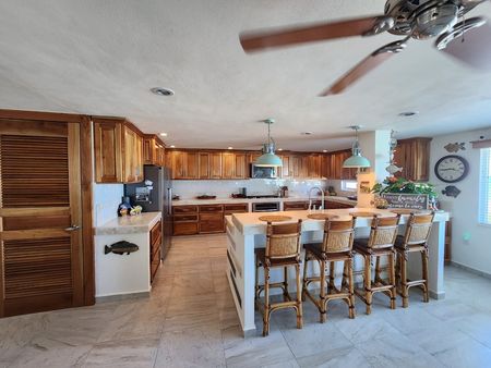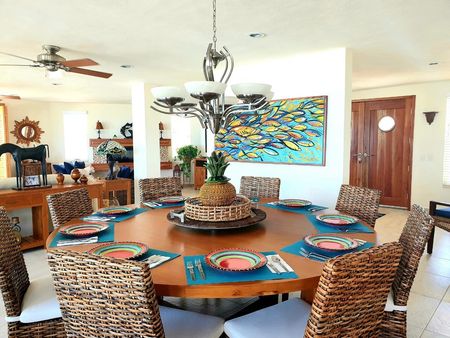 La sala principal mide 9.14 x 15.84 metros (30 x 52 pies). Seis grandes ventanales recorren la estancia ofreciendo impresionantes vistas al mar. Una puerta corrediza conecta con el bar exterior techado. Ventanas en cada pared que llenan de luz natural las habitaciones. Una magnífica chimenea crea el ambiente perfecto.
