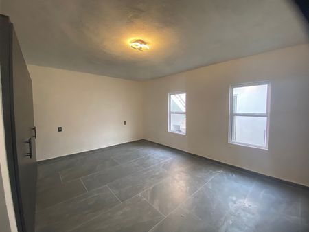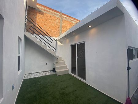 Planta baja: Cochera para 1 auto con portón, sala-comedor, cocina integral con barra desayunadora, recamara principal con vestidor, recamaras secundarias con closet, comparten 2 baños completos, patio con pasto sintético.