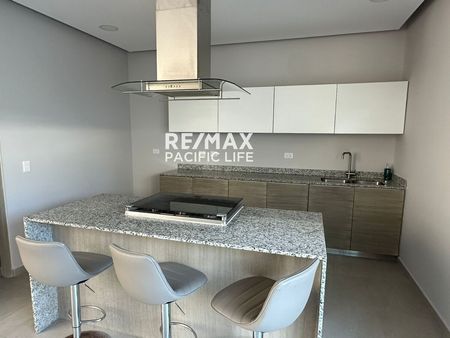 Su interior destaca por sus acabados de alta calidad, como carpintería de cedro, pisos de porcelanato y cocina con cubierta de granito. Cada espacio ha sido cuidadosamente planeado,