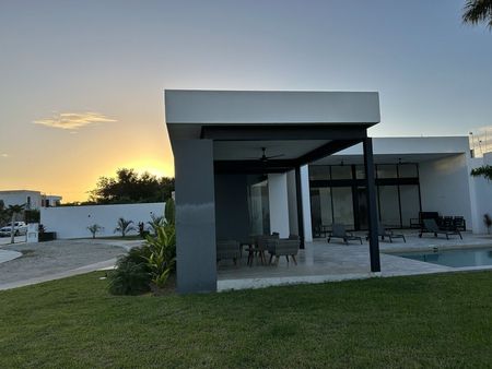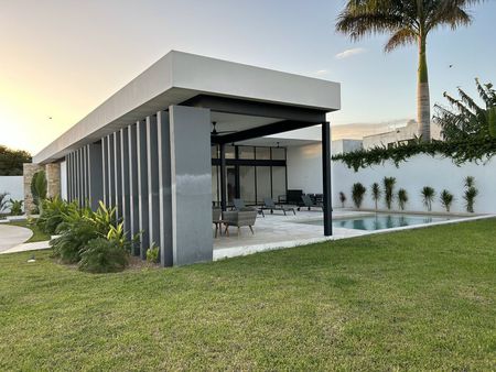 ¡Tu nuevo hogar te espera en Temozón Norte! Hermosa casa con amplios espacios, cocina equipada, jardín, alberca con 4 recámaras y 4 baños con clóset vestidor en venta en exclusiva privada con vigilancia 24/7.