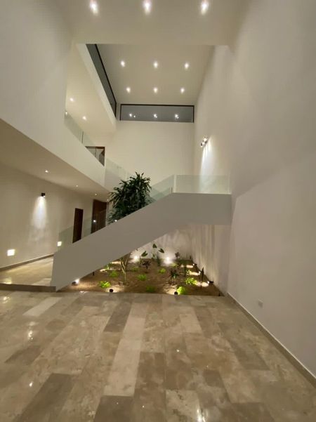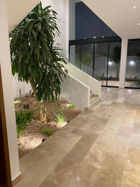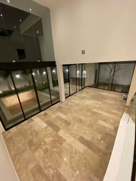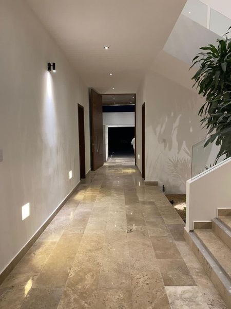 La casa cuenta con acabados de primera como pisos de Marmol florito, Puerta con diseño exclusivo, Precioso sistema de iluminación indirecta.