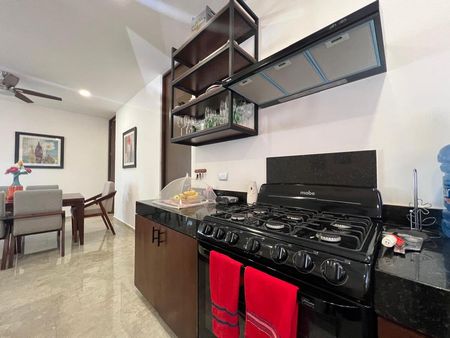 - Cocina con meseta de granito ubatuba, estufa con 6 quemadores y horno con campana