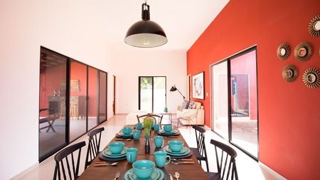 Además cuenta con un amplio patio trasero al cual se puede llegar por medio de la extensa terraza en la que puede pasar agradables veladas o disfrutar de la brisa yucateca.