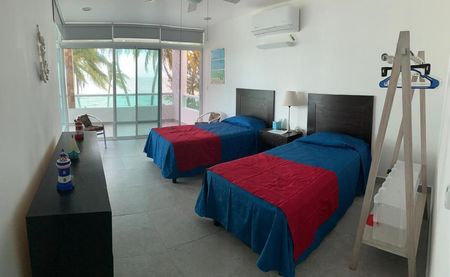 -Tres recámaras con baño completo, dos de ellas con terraza y hamaquero, vista al mar y la tercera recámara con terraza y vista al área común; closet de blancos con entrepaños, puertas y cerradura.