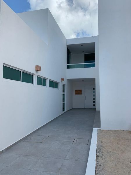 Superficie Construida 330.20 metros cuadrados, con aplanados de yeso en muros, plafones y pintura vinílica, pisos interiores y exteriores con recubrimiento y zoclos en toda la casa; puertas y ventanas exteriores de aluminio blanco.