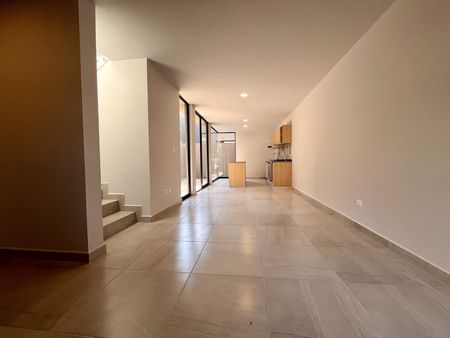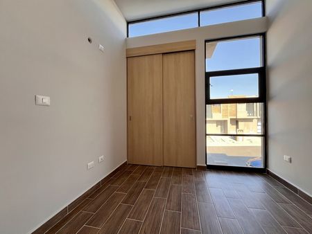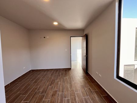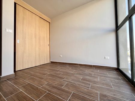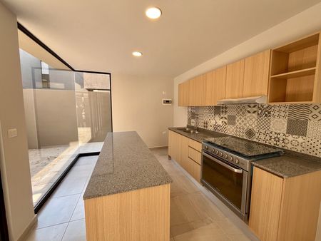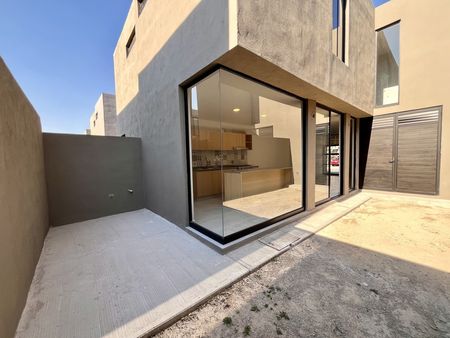 2 lugares de estacionamiento, sala, comedor, cocina con barra desayunadora y horno. Área de lavado oculta, jardín con pasto sintético con pequeña terraza, todo esto en primer nivel. En segundo nivel encontramos dos amplias recámaras secundarias con closet cada una, un baño completo y la recámara principal, equipada con walk in clóset, baño privado y mini split. Equipada con cancelería de vidrio templado y persianas. Estudiantes bienvenidos, mascotas bienvenidas.