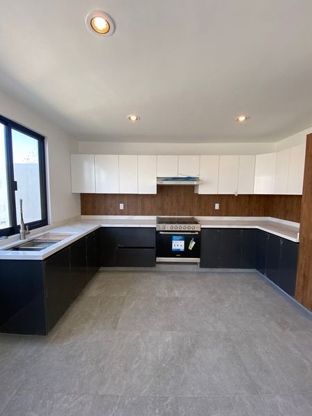 •Cocina equipada con campana de acero inoxidable, estufa, horno, despensa, puertas para almacenar, barras de granito.