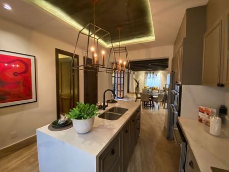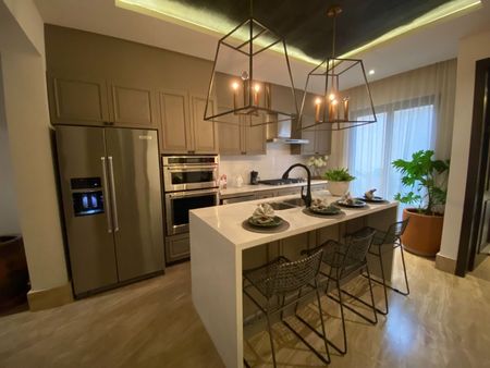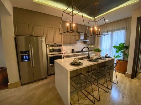 -Cocina con cubiertas de cuarzo calacatta (incluye parrilla, hornos, refrigerador y lavavajillas)