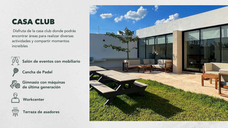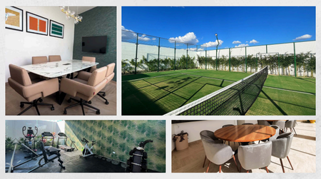 Casa Club con salón de eventos climatizado, gimnasio, terraza con asadores, cancha de pádel y mucho más.