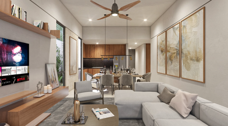 Amplia casa de una sola planta con 3 recámaras, diseñada para facilitar el movimiento y adaptarse a las necesidades de cada etapa de vida.