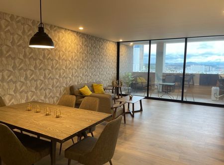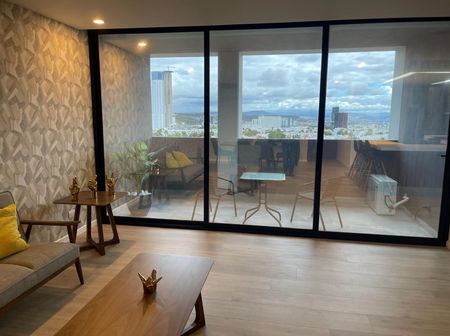 Renta departamento de lujo en Alegra Towers Juriquilla, ideal para ejecutivos o extranjeros. Totalmente amueblado y equipado por $29,000 (mant. incluido). Cuenta con 2 recámaras ,aieres acondicionados, 2 baños completos, cocina integral equipada (refri, lavavajillas), centro de lavado, sala de TV y terraza con vista. Incluye blancos. Amenidades premium: alberca, gimnasio, canchas, cine y más. ¡Listo para mudarse!