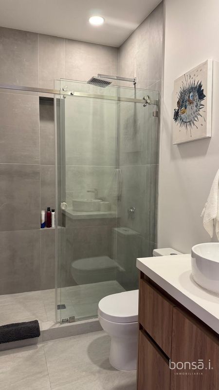 The apartment has common areas such as living room, kitchen and dining room in open concept, three bedrooms, the master bedroom with walking closet and private bathroom, a full bathroom to share, indoor laundry room, balcony with beautiful ocean view, and two exclusive parking spaces.