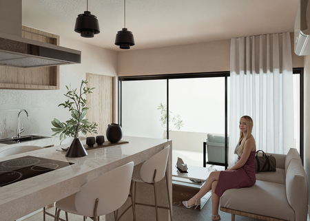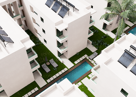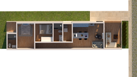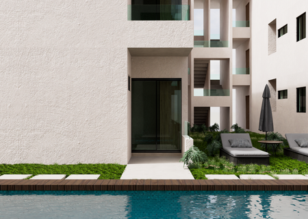 El inmueble consta de 73 M2 de construcción, cochera para 1 auto, un patio de servicio, cocina integral con barra desayunador, 2 baños completos,uno será en general y el otro se encontrará en la recamará principal, sala y comedor, terraza frontal y albercas en la parte trasera, albercas de 12x3 metros y una profundidad que comienza desde los 50 cm. hasta llegar a 1.50 cm. esto es de extremo a extremo, toda el departamento tendrá equipamiento y materiales adaptados para vivir en un ambiente único y exclusivo con la comodidad y la seguridad de Yoliztli Park.