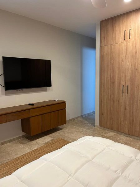 3 recamaras: Recámara principal con clóset, cama queen size, TV y baño completo.