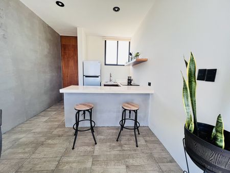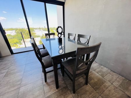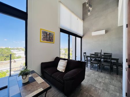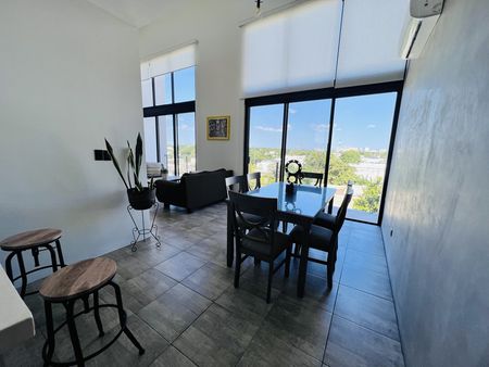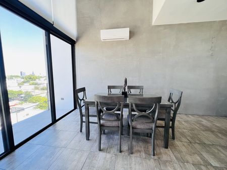Departamento de dos pisos estilo industrial con vista a la ciudad al norte de Mérida. Se en un edificio de 9 departamentos y se encuentra en el tercer piso.