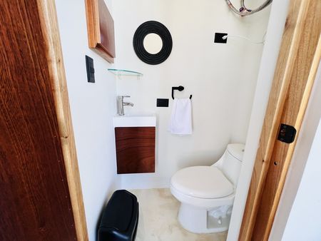 Al ingresar al depa encontrarás la cocina, y el comedor, le sigue la sala, medio baño de visitas y una recámara con cama matrimonial y baño completo. En la planta alta se encuentra la sala de TV y recámara principal con cama kingsize y baño completo. No hay elevador.