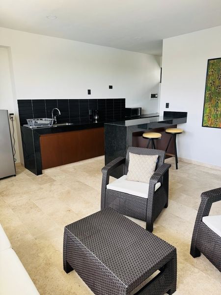 El departamento se encuentra en el tercer piso, es completamente nuevo, así como también los muebles. Ofrece espacios muy cómodos llenos de mucha luz, frescura y buena vibra. El edificio tiene elevador y está rodeado de mucha vegetación .
