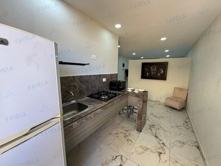 Cocineta equipada con parrilla de gas empotrada y refrigerador