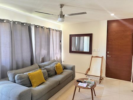 El interior consta de una sala-comedor integrada, ideal para recibir visitas o disfrutar de momentos en familia. La cocina integral está equipada y lista para usarse. Cuenta con 2 recámaras con clósets y 2 baños completos, además de un medio baño adicional.