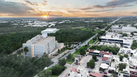 Este desarrollo vertical que marca el principio de un entorno urbano en la zona de Conkal, conformado por 70 departamentos y un área de servicio comercial, logrando englobar las principales necesidades para iniciar una comunidad que conecta con su entorno.