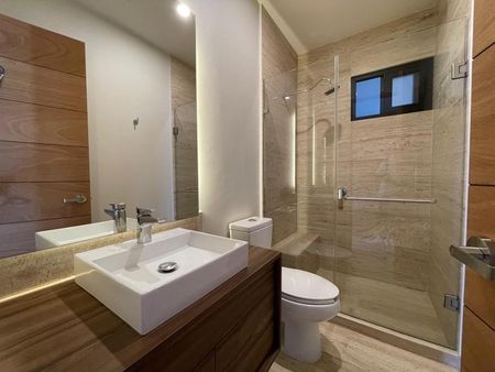 Acabados premium (piso de mármol, cristalería en baño en vidrio templado, etc). Con muros aislantes de ruido y temperatura, casa club con 15 amenidades: Pet Park, Cancha de Pádel, Alberca semi techada mas jacuzzi exterior, gym con área fitness, fogatero, etc..