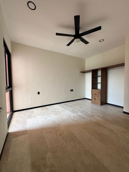 *Mesetas de granito en cocina y barra desayunadora, pisos de marmol, yeso en muros, muros divisiorios de block.